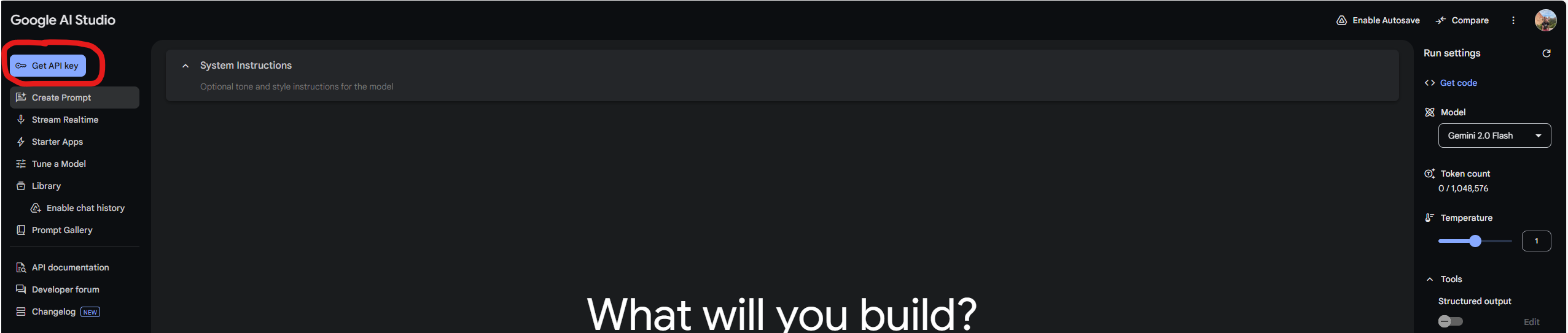 From there you will be taken to a project dashboard. You shouldn’t have to do anything from there - we just need a project available for our next step, which is generating an API key. Go to the Google AI Studio to do this. You can interact with Gemini from here, but that doesn’t really fit our goal of trying to do things locally.