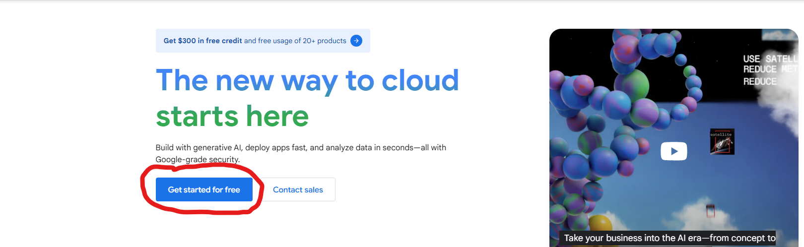 The first thing you’ll need to do in order to work with Google Gemini via their API is set up a Google Cloud Environment. Simply click on “Get started for free” and follow the instructions to set up your account.