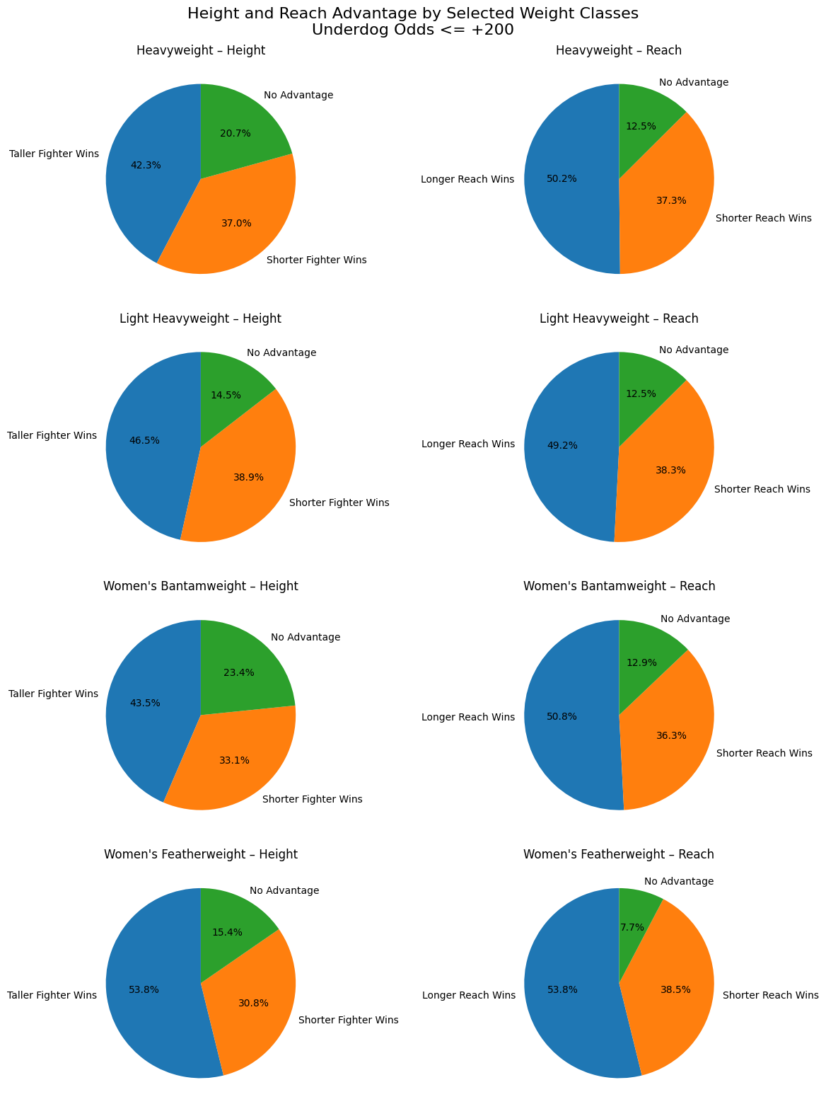 There are, however, a couple of classes where height and reach does make a sizable impact: Heavyweight, Light Heavyweight, Women’s Bantamweight, and Women’s Featherweight.